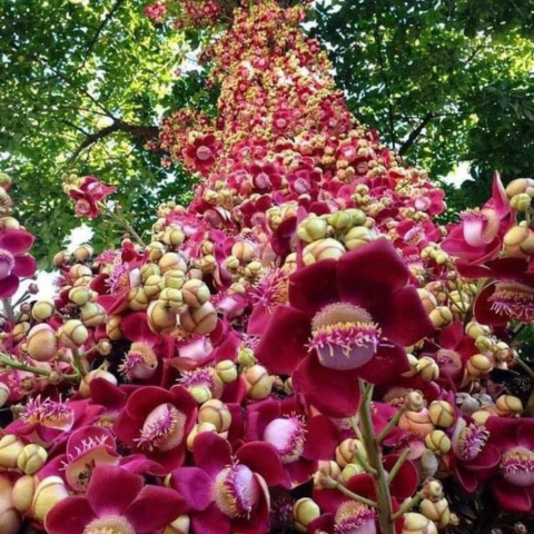 A cannonball tree, scientifically known as Couroupita guianensis, is a large tropical tree native to the rainforests of South America, particularly in the Amazon basin. It is also commonly found in other tropical regions, including parts of Central America, the Caribbean, and Southeast Asia.