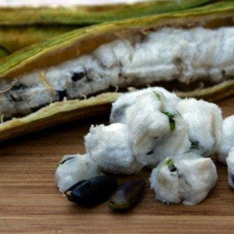 The ice cream bean, also known as the Inga bean or pacay, is a type of fruit that comes from several tree species in the genus Inga, native to Central and South America. The name "ice cream bean" comes from the fact that the pulp surrounding the seeds has a sweet, cotton candy-like flavor and a creamy texture, similar to vanilla ice cream.