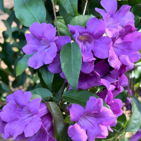 Appearance: The Garlic Vine has evergreen foliage with opposite, pinnate leaves consisting of several leaflets. The flowers are trumpet-shaped and vary in color, ranging from purple to lavender or white. The plant produces clusters of these fragrant flowers.
